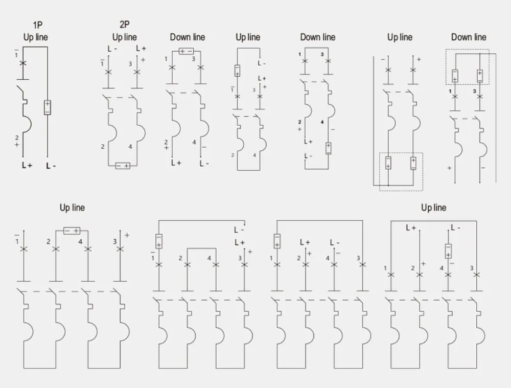 | Rated voltage Ue(V) | 125V/250V DC(1P), 250V/500V DC(2P), 500V/1000V DC(4P) |