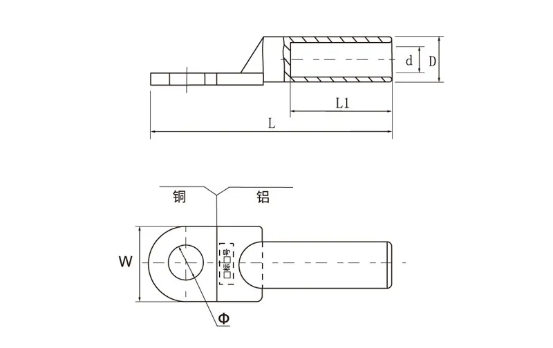 DTL Copper/Aluminum Terminals are made of high-quality copper and aluminum materials to ensure good conductivity and corrosion resistance. This product can effectively reduce contact resistance and improve the stability and safety of electrical systems.