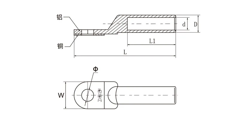 DTL series copper/aluminum terminals are designed for high conductivity and corrosion resistance and are suitable for a variety of electrical connection scenarios. Its unique combination of copper/aluminium material not only ensures good electrical conductivity, but also enhances corrosion resistance and extends service life.