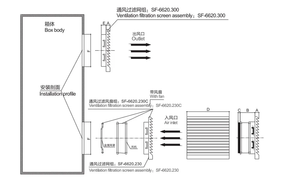 | SF66 series ventilation filter group | SF-6625.230 | Into the wind | - | IP44 | -10℃-50℃ | 1725# |