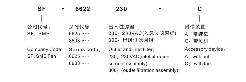 | SF66 series ventilation filter fan group | SF-6625.230C | Into the wind | 230/170 m³/min | IP44 | -10℃-50℃ | 1725# |