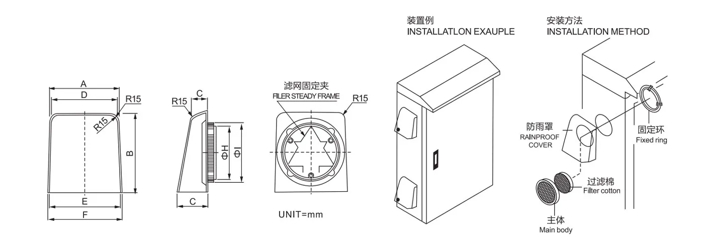 Material: filter body made of flame retardant ABS resin, net made of foreign nylon fiber synthetic resin, with the anti-ultraviolet and static resistant performance, dust cleaning rate up to 86%, effectively prevent dust from access into electric cabinet.