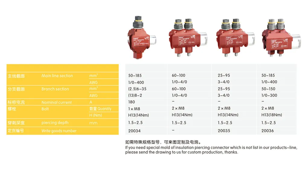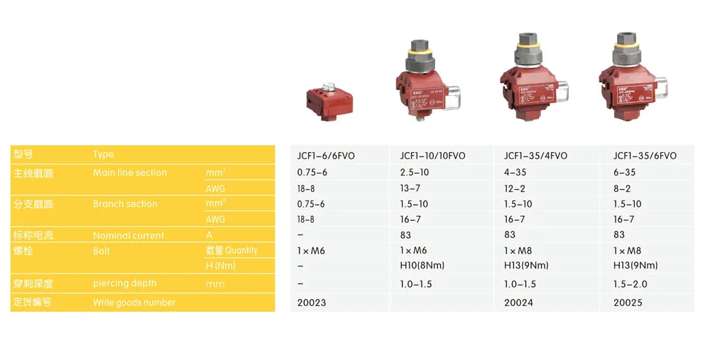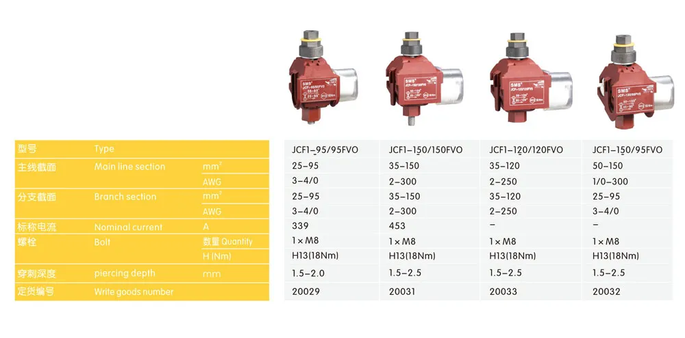 | JCF1-120/35 FV0 | 50-120 | 1/0-400 | (2.5)6-35 | (13)8-2 | 200 | 1×M8 | H13(14Nm) |