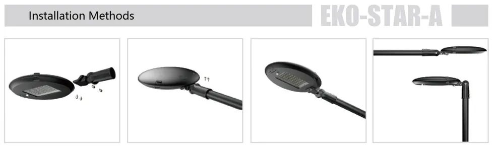 EKO-STAR-A 30-150W Street Light is an energy-efficient outdoor lighting product. It uses advanced LED light source technology and has the characteristics of high light efficiency, long life, energy saving and environmental protection. The street light is well designed and beautiful in appearance, suitable for lighting needs of urban roads, squares, parks and other places.