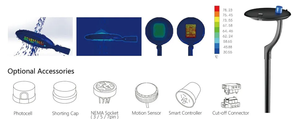 | Available on request | NEMA socket(3/5/7 pins), Photocell, ZHAGA socket, Short cap, 1-10V dimming, DALl Dimming, PIR |